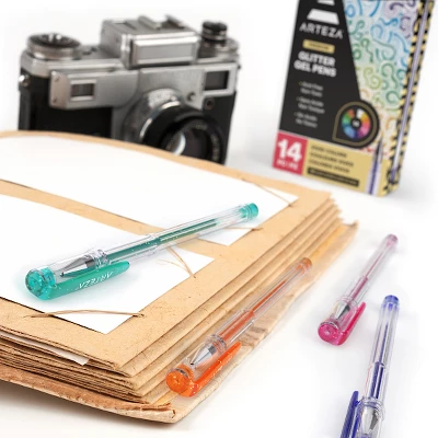 Arteza Gel Ink Colored Pens Set, Glitter, Assorted Colors – Doodle, Draw, Journal – 14 Pack