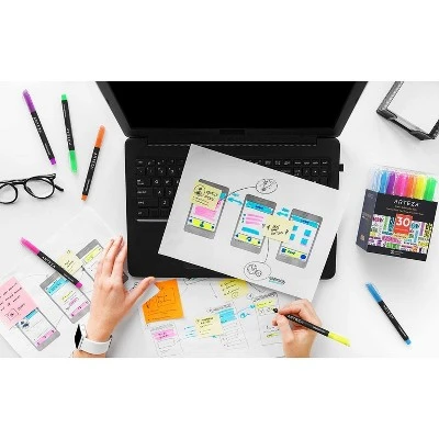 Having a reliable bulk set of highlighters makes your work, school, and home life easier. This set of 30 highlighters with narrow chisel tips comes in 6 colors: blue, purple, pink, orange, yellow, and green. With a wide range of neon highlighter colors to choose from to color coordinate your notes, create colorful illustrations, or emphasize text. The narrow chisel tips encourage you to make meaningful marks to differentiate important information. The quick-drying ink wonโt smudge or smear; making this set of 30 ideal for left-handed writers.
