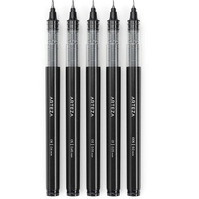 Arteza Liquid Micron Pen Black Pigment Ink – 5 Piece