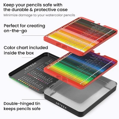 - Includes 48 Watercolor Colored Pencils in a sturdy storage tin (the packaging)