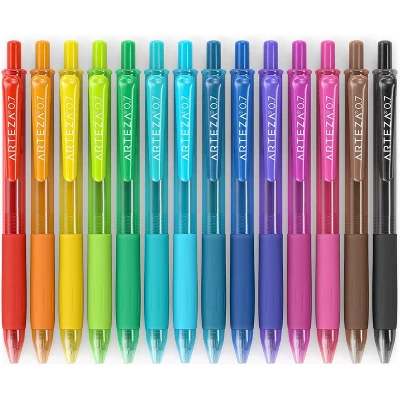 Arteza Retractable Gel Ink Colored Pens Set, Bright Colors – Doodle, Draw, Journal – 14 Pack
