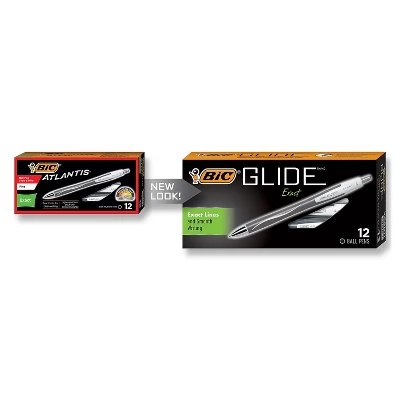 BIC Glide Exact (formerly BIC Atlantis Exact) Retractable ball point pens deliver exact, precise lines for clean writing. The BIC Glide Exact Retractable ballpoint pen delivers exact precise lines for clean writing and writes smoother than BIC’s classic ink system. The smooth ink in the BIC Glide Exact allows for fine lines without the scratchy feeling commonly associated with fine point stick pens. The BIC Glide Exact Retractable ballpoint pen is a sleek, professional, smooth-click retractable ballpoint pen with a full grip area. The grip runs the full length of the barrel providing a comfortable and controlled writing experience. The BIC Glide Exact Retractable ballpoint pen is not only a great option for business people in the office, accounting and banking profession; it is great for everyday use wether at home, school or on the go. Available in fine point in black, blue, red, green and fashion ink. Full grip area for added control and comfort. BIC’s smoothest ink. Sleek, professional smooth click retractable ball pen. 0.7mm fine point that delivers exact, precise lines for clean writing. A pocket clip allows the pen to always be around when you need it. Package contains 12 black pens. Also available in medium point, bold point and comfort grip. This product is formerly known as BIC Atlantis Exact. Sold as 1 Dozen.