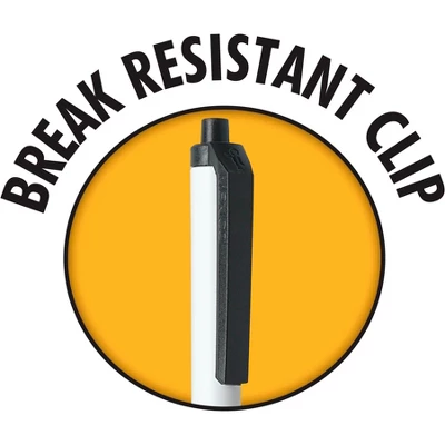 BIC Clic Black Ink Stic Medium Point Pen with white barrel is featured with a comfortable round barrel design. The ink color can be easily keyed out by the break-resistant color-coded pocket clip. Sold as pack of 12.