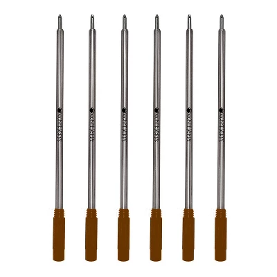 Monteverde Brown ballpoint refill to fit cross ballpoint pens with nickel plated brass body and medium swiss tip point consists of low viscosity ink for better writing and is sold as 6 per pack. Monteverde Brown ballpoint refill to fit cross ballpoint pens is fabricated using nickel brass body and a swiss tip gives a better grip. Specially designed low viscosity ink supports uninterrupted writing, sold as 6 per pack. Smooth writing. 6/Pack. Medium tube packaging.