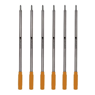 Monteverde Orange ballpoint refill to fit cross ballpoint pens with nickel plated brass body and medium swiss tip point consists of low viscosity ink for better writing and is sold as 6 per pack. Monteverde Orange ballpoint refill to fit cross ballpoint pens is fabricated using nickel brass body and a swiss tip gives a better grip. Specially designed low viscosity ink supports uninterrupted writing, sold as 6 per pack. Smooth writing. 6/Pack. Medium tube packaging.