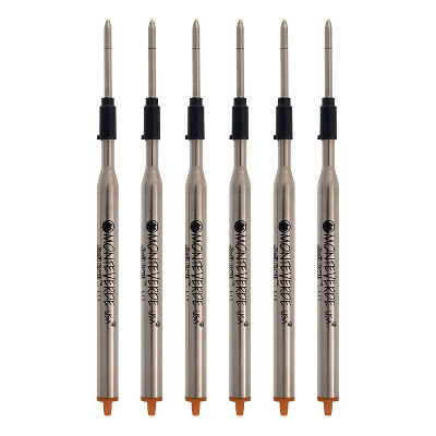 Monteverde Soft roll Medium point ballpoint refill in orange to fit Lamy ballpoint pens that offers the latest technology for smooth writing experience, sold as 6/pack. Monteverde Soft roll Medium point ballpoint refill in orange for Lamy ballpoint pens features low viscosity ink for easy flow. Refill bears a nickel plated brass tube and a medium point swiss tip, sold as 6/pack. Orange. Medium. Fits lamy ballpoint pen. Smooth writing. 6/Pack. Medium tube packaging.