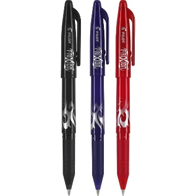 Create journal entries, drafts and other writing projects with this 3-pack of Pilot FriXion Ball fine-point assorted erasable gel pens. Correct errors as you write with these fine-point gel pens. The erasable thermo-sensitive ink formula makes these pens ideal for doing homework assignments, writing essays and working on other frequently revised papers. These Pilot FriXion Ball gel pens include convenient clips, so you can take them on the go, while the assorted colors make it easy draw attention to specific dates, events and other notes. Erasable gel pens allow you to write, erase, and rewrite with no wear-and-tear. Assorted colors for a variety of tasks. Fine 0.7mm tip ensures crisp lines with every use. Assorted color barrels. Three pens per pack. Comfort grip for superior control. Features a pocket clip for convenient carrying. Refillable ink allows pens to be reused instead of replaced to save money. Comfortable, round barrel design. Sold as 3/Pack.