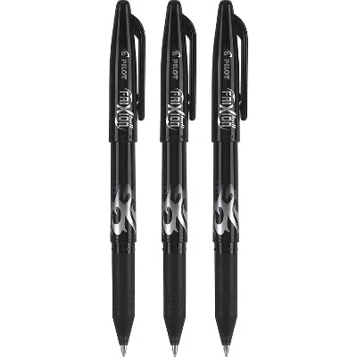 Write, erase and then write clearly again using these Pilot FriXion Ball fine-point black erasable gel pens. Get the convenience of both a pen and a pencil with these Pilot FriXion Ball erasable gel pens. The fine tip keeps your writing sharp, while the erasable gel ink lets you correct your errors on the fly. The pen’s retractable design helps prevent unwanted marks when not in use. These Pilot FriXion Ball erasable gel pens are perfect for doing homework, crossword puzzles or editing papers. Erasable gel pens allow you to write, erase, and rewrite with no wear-and-tear. Black ink has a rich color for excellent readability. Fine 0.7mm tip ensures crisp lines with every use. Black barrel. Three pens per pack. Comfort grip for superior control. Features a pocket clip for convenient carrying. Refillable ink allows pens to be reused instead of being replaced to save money. Sold as 3/Pack.
