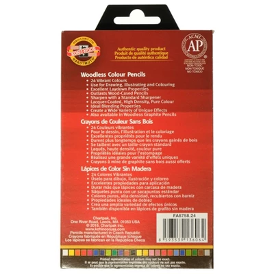 Progresso Woodless Colour Pencils by Koh-I-Noor put the color in the pencil and leave the wood on the tree. High-density, lacquer-coated Hardtmuth color pencils possess a smooth feel and excellent laydown properties loved by professional artists. These woodless pencils sharpen with a standard sharpener and utilize the entire lead. Progresso pencils outlast standard wood-cased pencils and maintain excellent light permanency ensuring a vibrant look that lasts. Progresso Woodless Colour Pencil Set of 24 creates work that is also water-resistant and non-toxic.