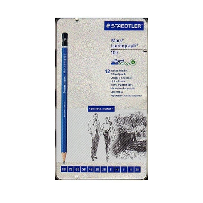 The standard of excellence among woodcased pencils, Lumograph pencils are perfect for sketching, design, and writing. Lumograph pencils glide smoothly over the paper. They are highly break resistant and erase easily. Available in special soft lead assort tments for sketching and drawing. Packaged in a decorative storage tin. Set of 6 includes 8B, 7B, 6B, 4B, 2B and HB in a tin. Set of 12 includes 8B, 7B, 6B, 5B, 4B, 3B, 2B, B, HB, F, H and 2H in a tin. Premium quality pencil for writing, drawing and sketching on paper and matt drawing film. Special lead formulation and super-bonded lead produce high resistance to breakage. Sets packaged in durable and convenient tin box. Wood from certified, sustainably managed forests. unit: set of 12. Sold as 1 Each.