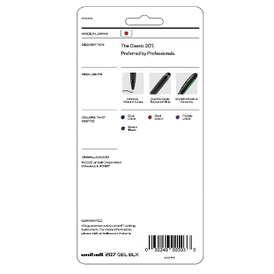 The uniball 207 BLX Assorted Gel Pens feature a quick-drying, pigment-based ink system that enables you to write tamper-proof checks and documents. Give your writing a boldly infused flavor with 207 BLX Retractable Gel Pens from uniball featuring a 0.7mm medium point with a stainless steel tip that resists bending and breaking. Rich, pigmented gel ink color delivers an exceptionally smooth writing experience for intense, vibrant lines. Use these retractable gel pens for everyday writing tasks, note taking, list making and check signing , trusting its quick-drying uni Super Ink. Innovative uni Super Ink technology effectively entraps the gel ink into the paper, producing fraud, fade and water-resistant documents that resist check washing or bleaching. The 0.7mm medium point strikes the perfect balance between bold and detailed lines. A textured grip offers greater comfort and control as you continue writing, while a translucent ink window indicates the level of gel ink remaining, so you don’t run out unexpectedly. These retractable gel pens come in an assortment of black ink infused colors, adding an element of drama to your every day tasks and creative writing projects. The medium 0.7 mm point balances between detail and boldness, suitable for any writing or creative need. Water and fade-resistant gel ink helps you compose long-lasting, high-quality documents you can archive. uni Super Ink entraps the gel ink in the paper, creating a strong bond that resists document fraud. A textured rubber grip ensures ease of writing while helping you maintain good control; convenient clip ensures that your favorite gel pen is always at hand. Professional’s first choice gel pen with stylish metallic accents and a high-quality finish. Gel pens feature smooth-flowing pigment-based black ink infused with dramatic color. Sold as 4/Set.