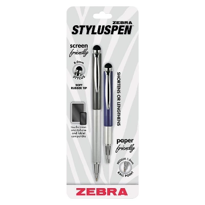 Performance to Fit Your Need and Your Pocket. The StylusPen Telescopic is a fusion of technology and tradition in an expandable ballpoint pen. Extend to full length to write with the smooth ballpoint pen or collapse it for portability and convenience. A minimalist approach that combines two assets into one expressive tool. 8.0mm easy glide stylus nib for capacitive touchscreens. Refillable with 1.0mm 4c refill. Available in black ink. Available barrel colors: Black, Grey, Navy, Lime Green, Light Blue, Pink, Purple, Orange. Available point sizes: 1.0mm. Sold as 2/Pack.